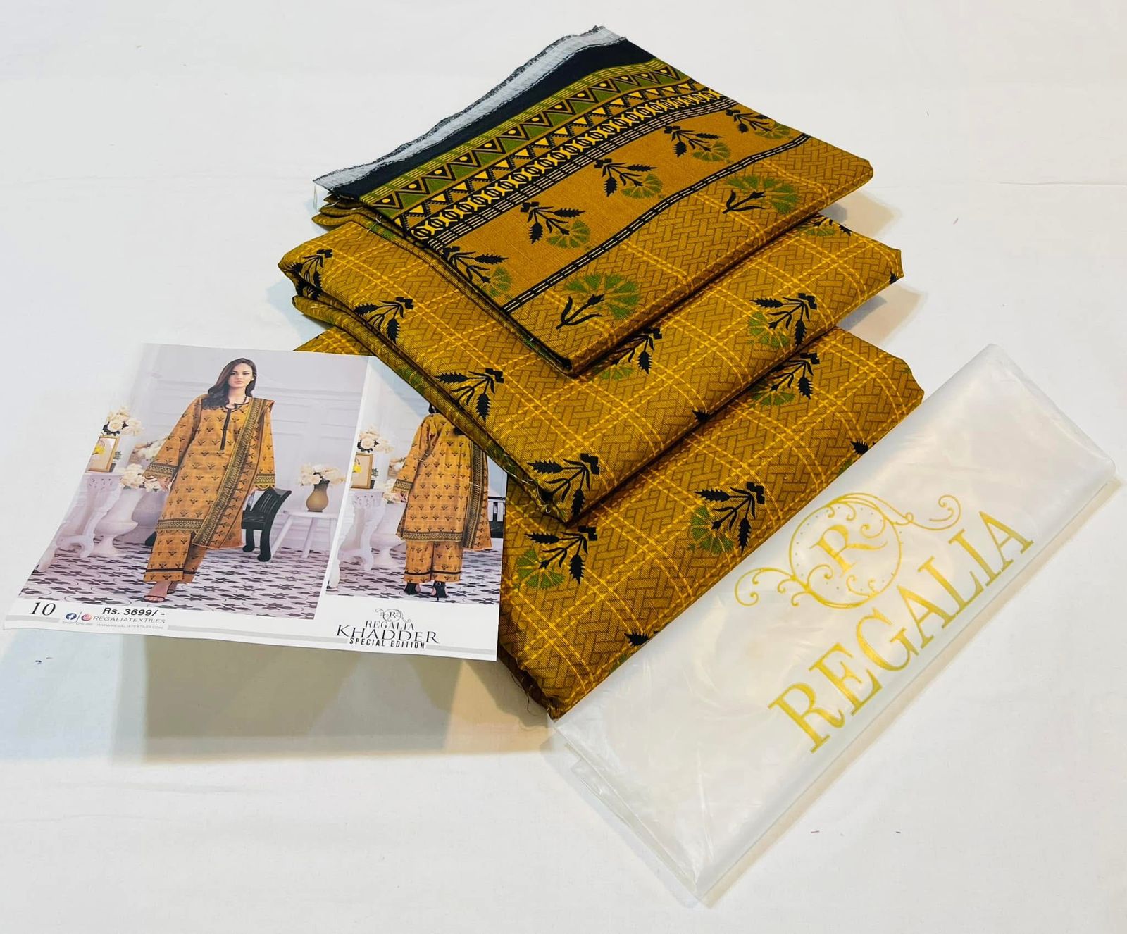 💯 Original Regalia 3 piece printed Khaddar Digital
